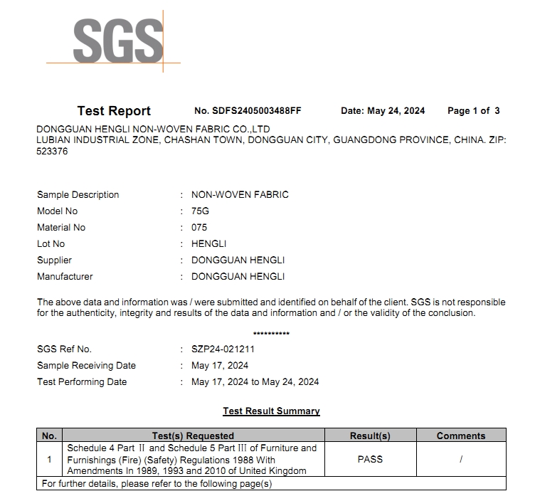 • 2024年最新版SGS無(wú)紡布英標(biāo)防火報(bào)告 測(cè)試評(píng)估方法是通過(guò)悶燒和直接明火接觸家紡織物。 ...