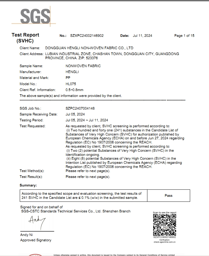 2024年SGS無紡布環(huán)保測(cè)試報(bào)告